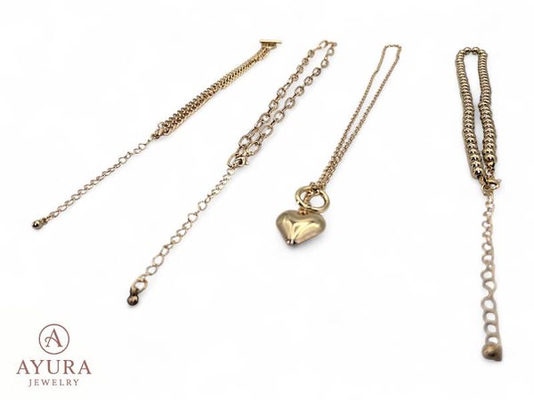 Set van 4 dameskettingen – Zilverkleurig of goudkleurig met hartbedel