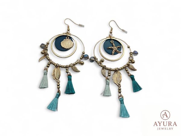 Bohemian oorbellen – Goudkleurig RVS met nautische franjes