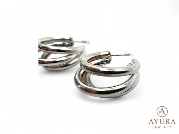 Voeg een speelse en elegante touch toe aan je look met deze damesoorbellen van roestvrij staal. Elke oorbel bestaat uit 3 verbonden ringen, waardoor een dynamisch en levendig effect ontstaat bij iedere beweging.