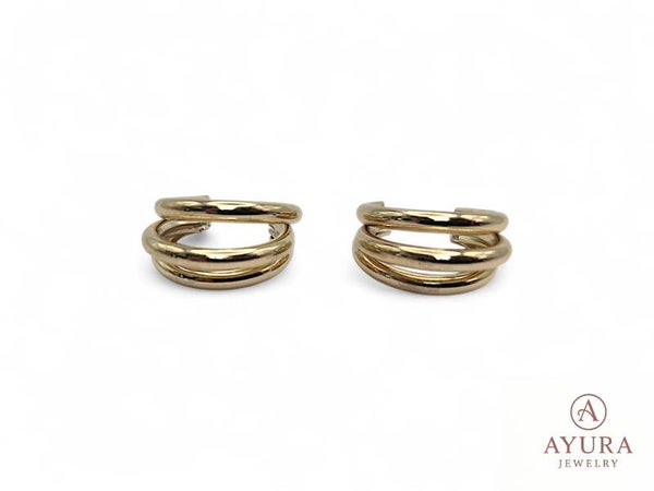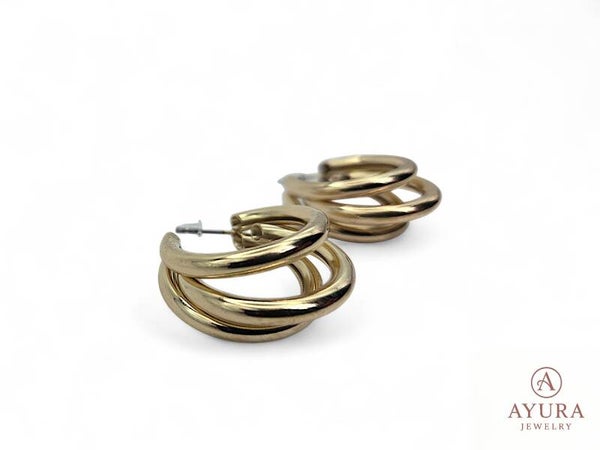Set van 2 damesoorbellen – Roestvrij staal, zilver & goudkleurig met 3 ringen