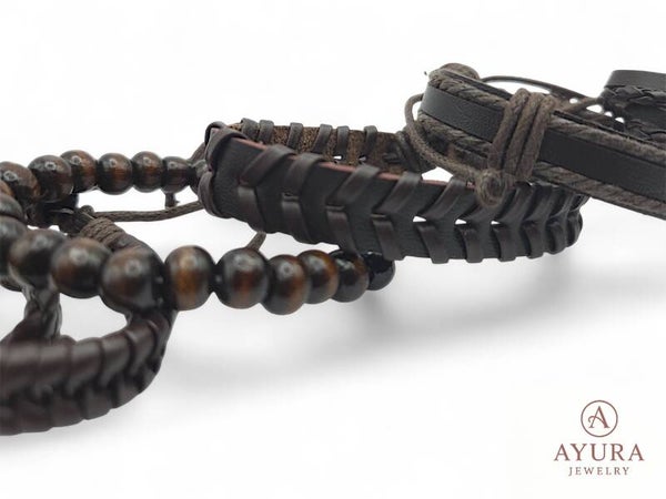 Deze set heren armbanden is ideaal voor mannen die hun stijl willen accentueren met een combinatie van leer en kralen, perfect voor dagelijks gebruik of als cadeau.