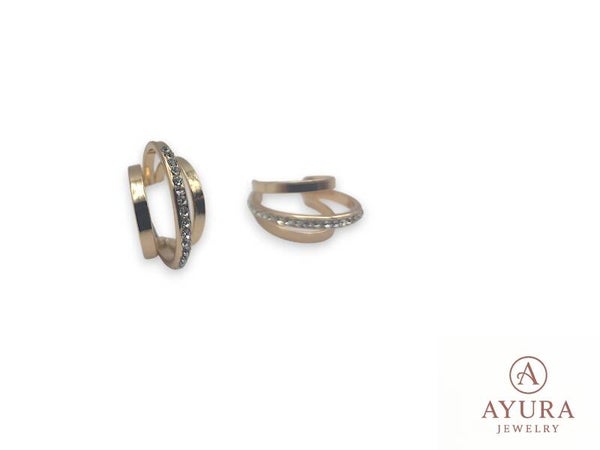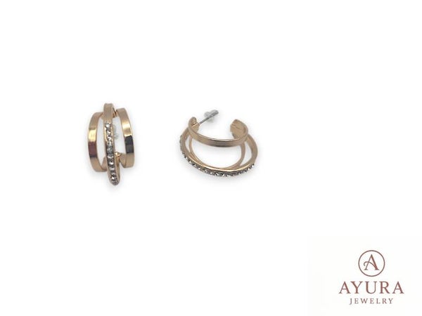 Dames oorbellen ‘Andes’ – goudkleurig RVS met drievoudige ring en zirkonia