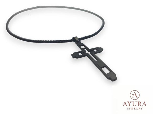 Deze ketting is gemaakt van hoogwaardig roestvrijstaal (RVS) en is verkrijgbaar in goudkleurig, zilverkleurig en zwart. De kruis hanger heeft een unieke open vorm, waardoor er een krachtig contrast ontstaat tussen het metaal en de uitsparing.
