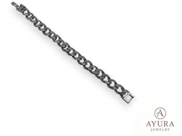 De RVS herenarmband ‘Bodan’ is ontworpen voor mannen die kracht willen uitstralen met oog voor detail. Deze robuuste armband combineert een stoere uitstraling met verfijnde afwerking: de brede schakels van 13 mm zijn voorzien van een subtiel bladmotief op een donkere achtergrond, wat zorgt voor extra diepte en karakter.
