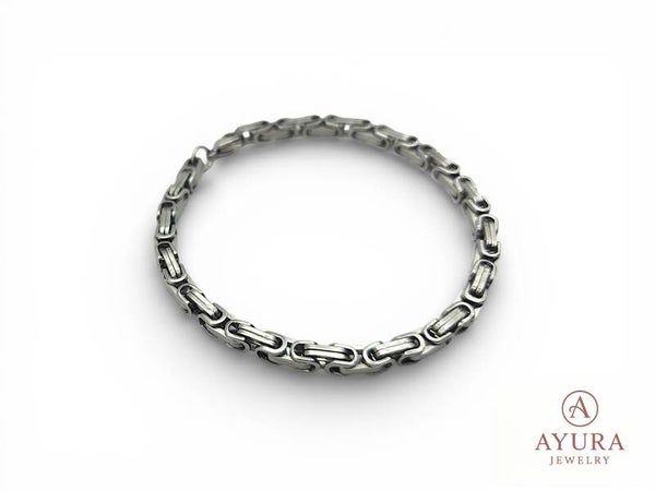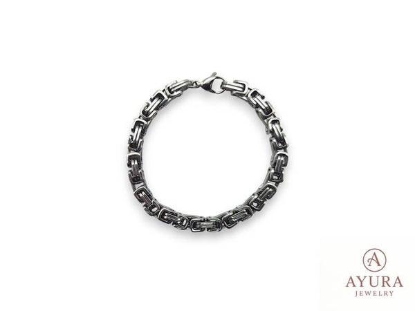 De RVS koningsschakel herenarmband ‘Alexander’ combineert kracht, elegantie en duurzaamheid en is een sterke toevoeging aan de collectie van Ayura Jewelry.